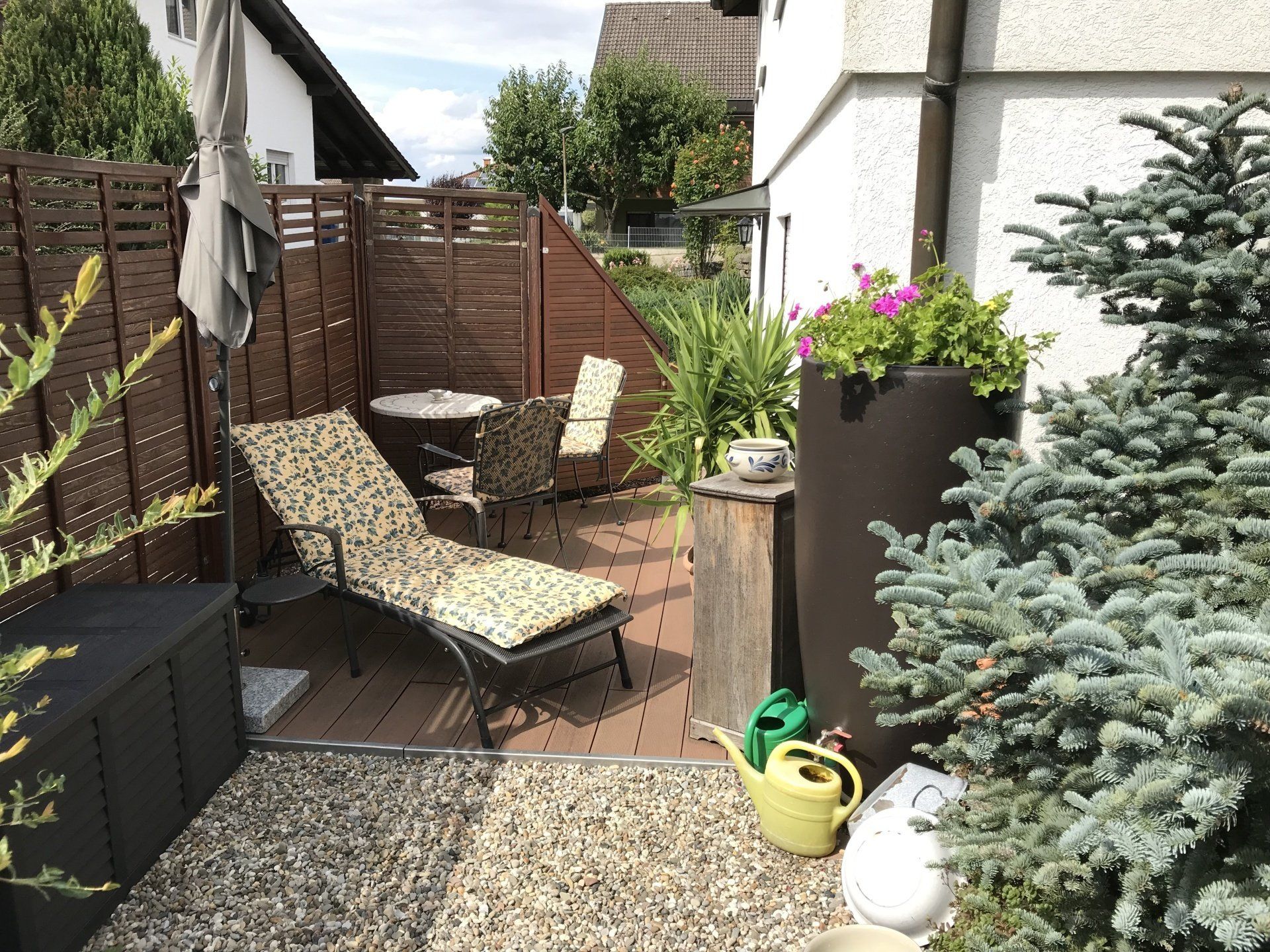 Eine kleine Terrasse mit Liegestuhl und einer Sitzgruppe stehen ebenfalls zur Verfügung.